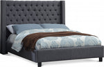 Introducing the Bed Black-IF 5897, where classic wingback charm meets refined, tailored detail. This elegant bed features a gracefully enveloping wing silhouette, adorned with deep button tufting and accented by delicate nailhead trim. Upholstered in versatile grey fabric, it offers a perfect blend of timeless texture, plush comfort, and understated luxury, creating a sophisticated and cozy focal point for your bedroom retreat.